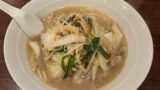 この日のメニューにあったのは「牛もつのバンコク煮」。いろいろな部位のモツが入っていて楽しい。奥に見えるのは「青唐ナンプラー漬け」。ナンプラー(魚醤)の臭みと青唐辛子の辛みで、ますますバンコク風の味になりました。お酒が進みますね、これは。