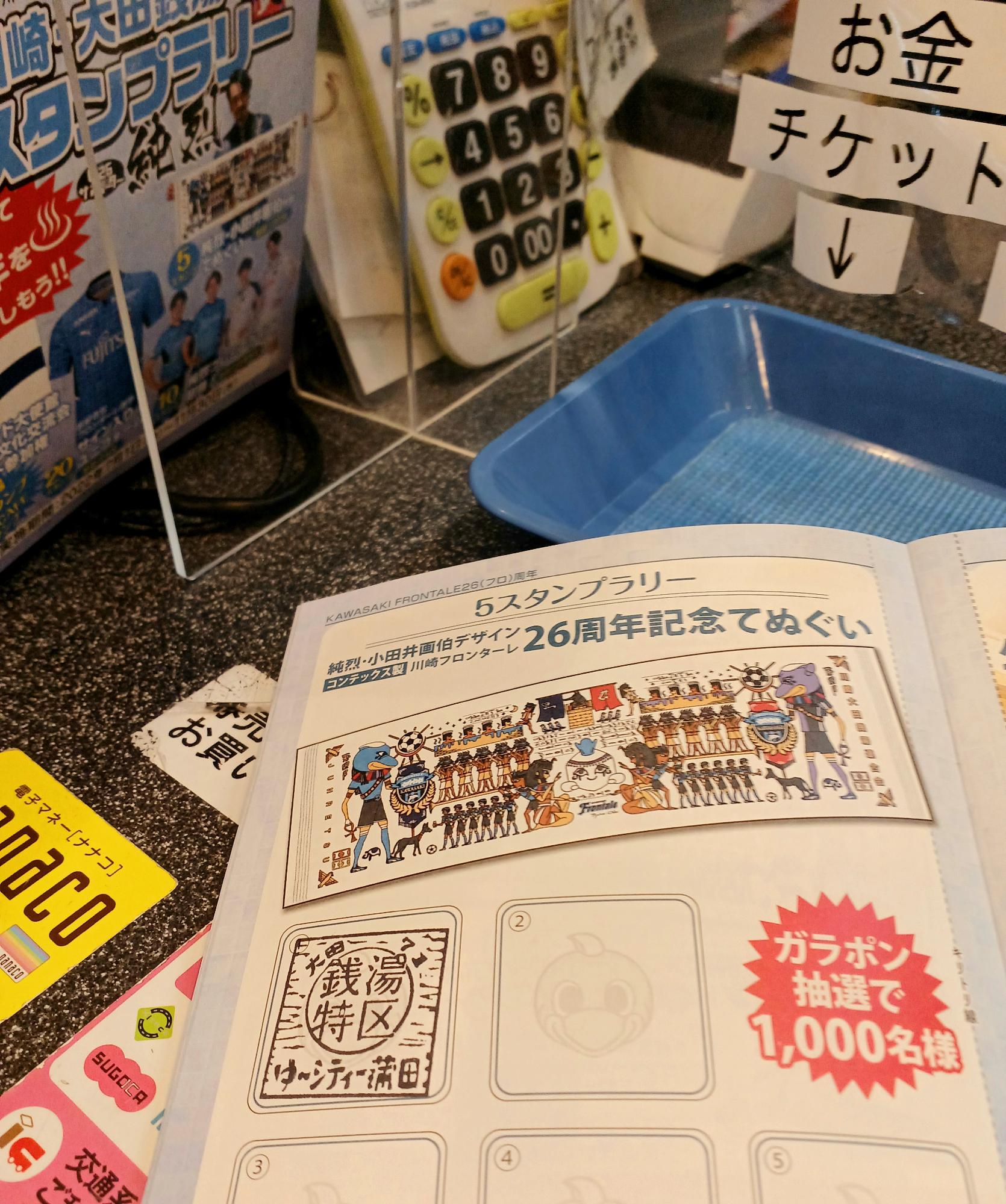 入場と同時に、川崎・大田銭湯 大スタンプラリー」(2022/7/1-11/30)のスタンプももらいます(スタンプラリーほか、入浴料など最近の銭湯トピックはこちらの記事も)。ゆ~シティーは電子マネー決済も導入済。交通系やPayPayも使えて便利。脱衣所のロッカーやドライヤー用では、100円玉と10円玉を使います。