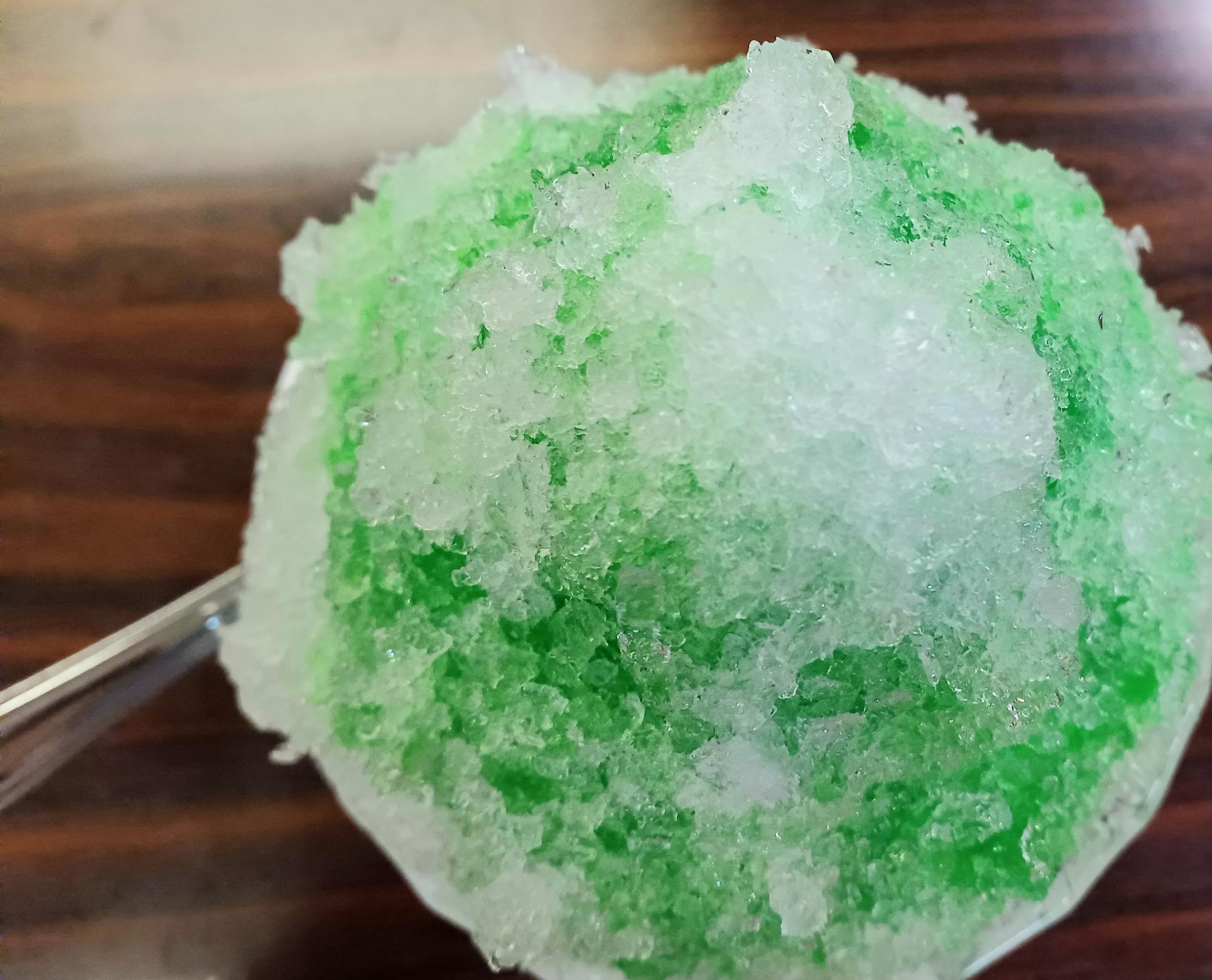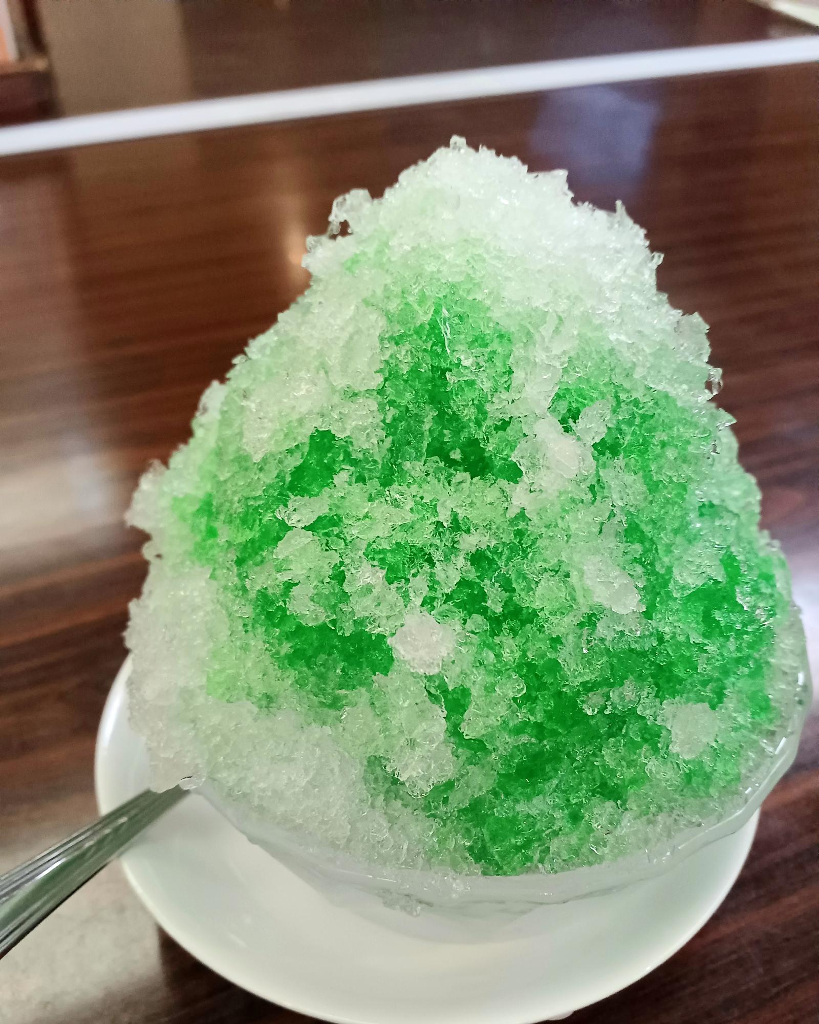 食券をキッチンに渡し、待つことしばし。ガリガリガリ…氷を削るいい音が聞こえてきます。はい、日本の夏はかき氷を食べて乗り切りましょう!