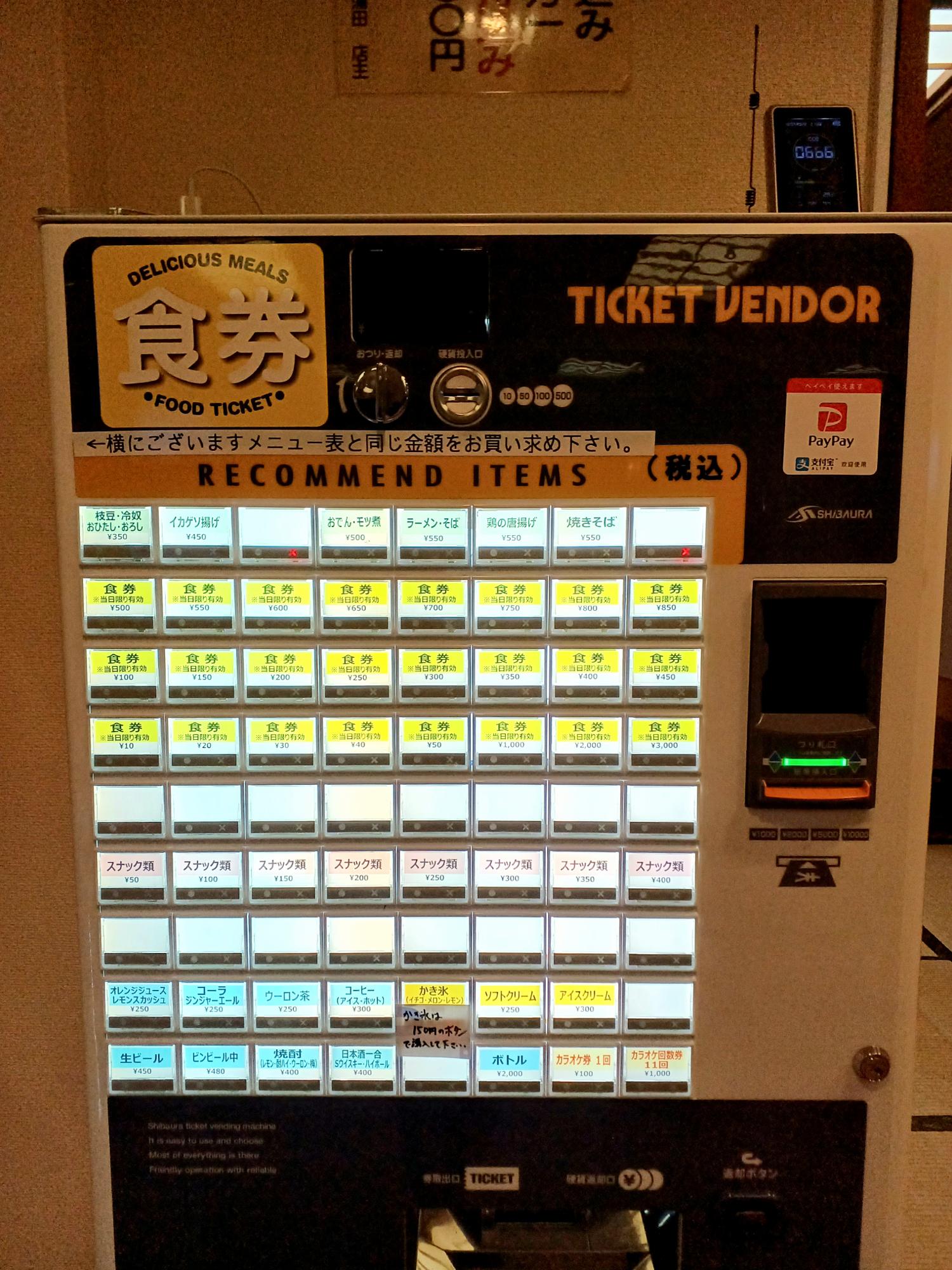 食事の際は、券売機で食券を購入。かき氷は通常300円のところ、期間限定で150円のため、150円の食券を買います。