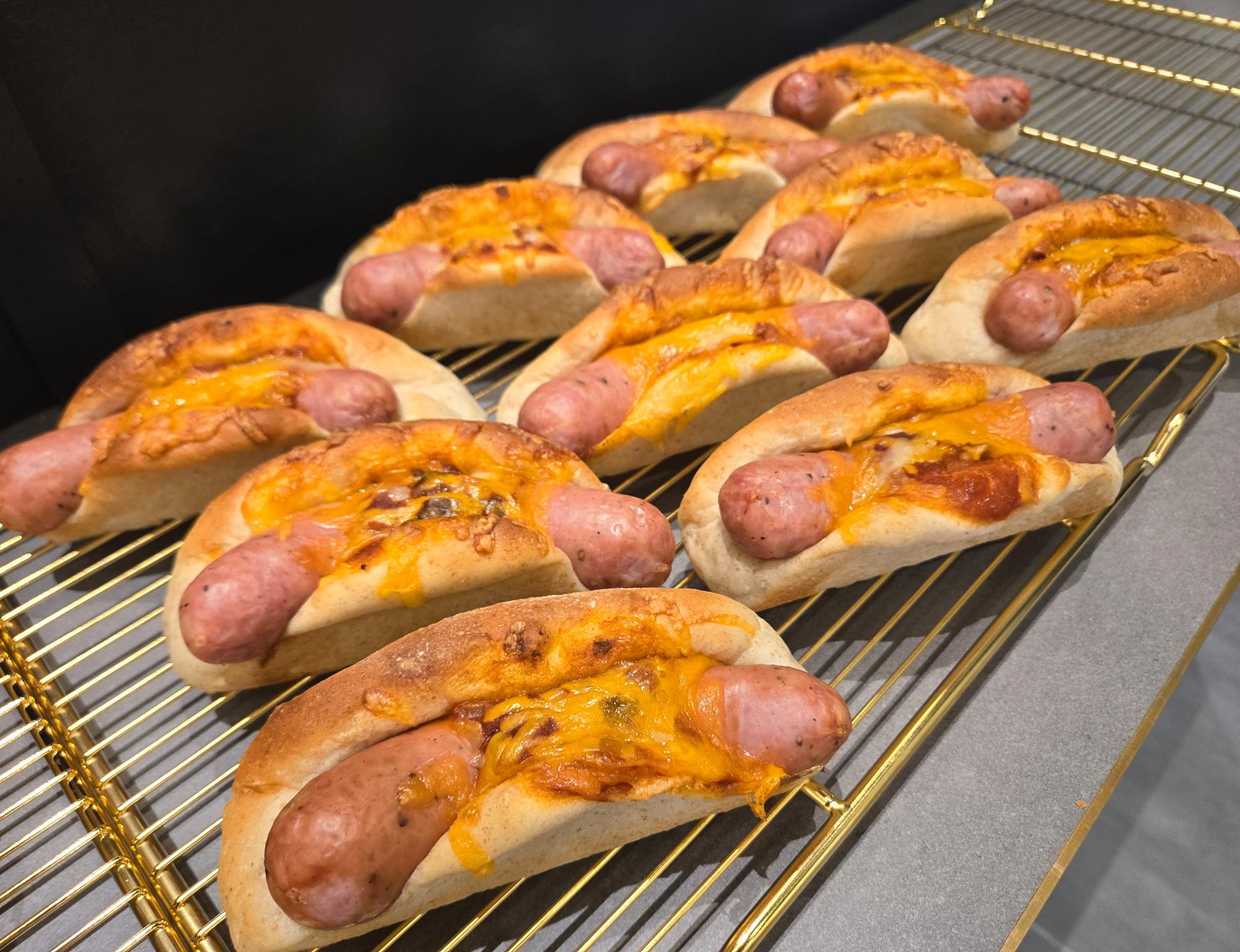 ずっしりと食べ応えのありそうな惣菜パン!イートインスペースがあり、店内飲食もできる。